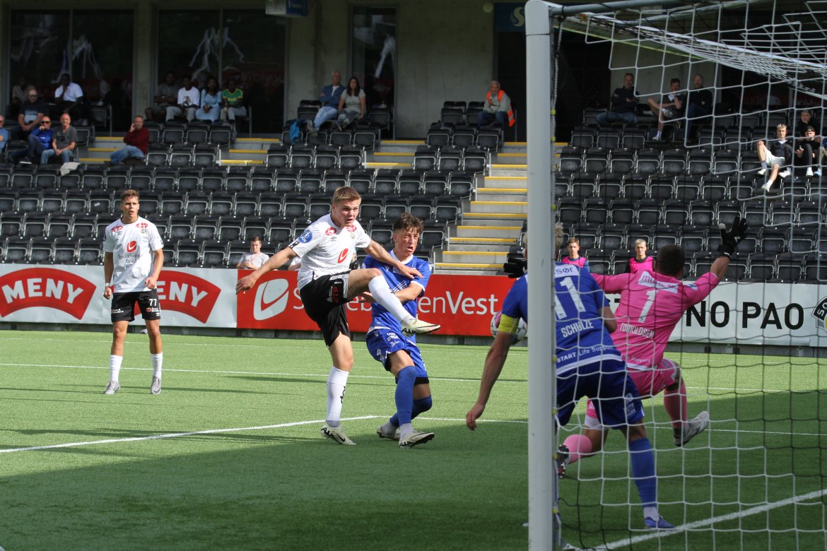 Etter kvilen var det ein jamn kamp der bortelaget hadde moglegheit til å komme litt tilbake i kampen. Det ville ikkje Erik Flataker ha noko av, og i løpet av to minutt var kampen avgjort. I det 63. minuttet var Edmund Baidoo på ferde igjen og la inn frå høgre. Óskar Borgþórsson heada ballen inn igjen i feltet, og ballen endå i beina på Erik Flataker. Då var det ingen tvil: ballen skulle i mål, og Start-keeper Torkildsen var sjanselaus. Feiringa fortalde alt om kor god den scoringa kjentest. Sjå bilete for bilete under: