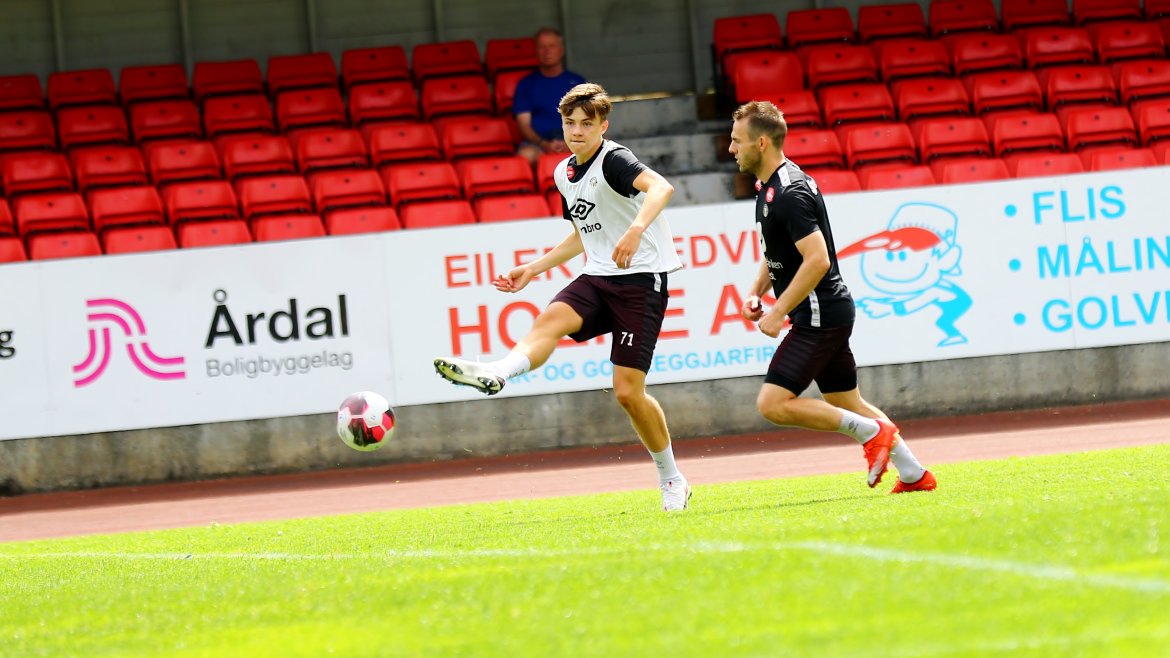 For årdølene Sivert Mannsverk og Eirik Lereng var det ekstra kjekt å få ha ei slik trening på Jotun Stadion. Me hadde óg med tre hospitantar til Årdal, ved Erik Paulsen (Stryn), Lukas Leirgulen (Stryn) og Leon Hovland (Molde)