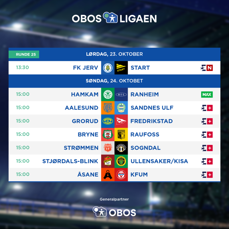 I dag skal fjorten av klubbane i OBOS-ligaen spela den 25. runden av årets seriespel.