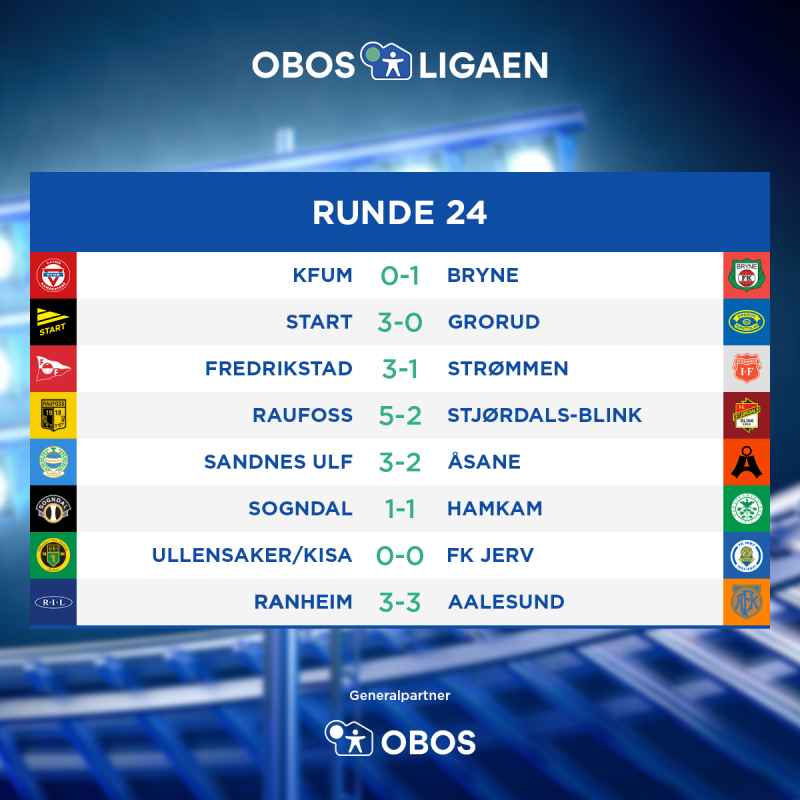 Det var full runde i OBOS-ligaen på onsdag. Då fekk me desse resultata