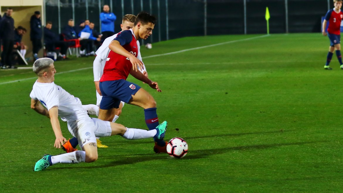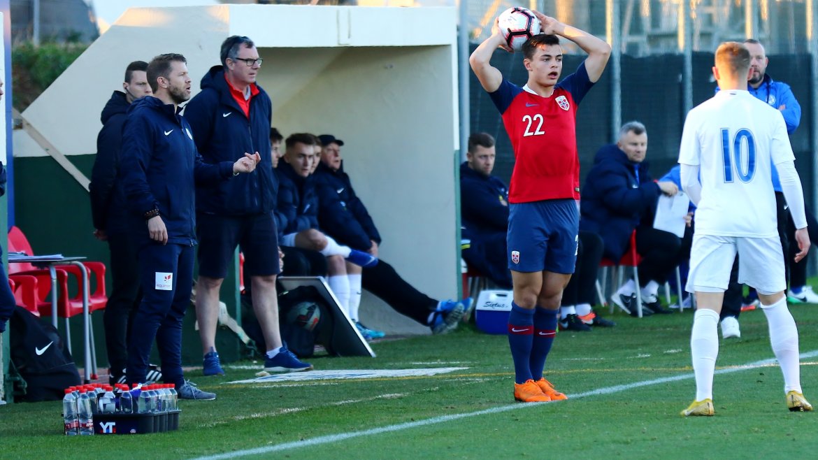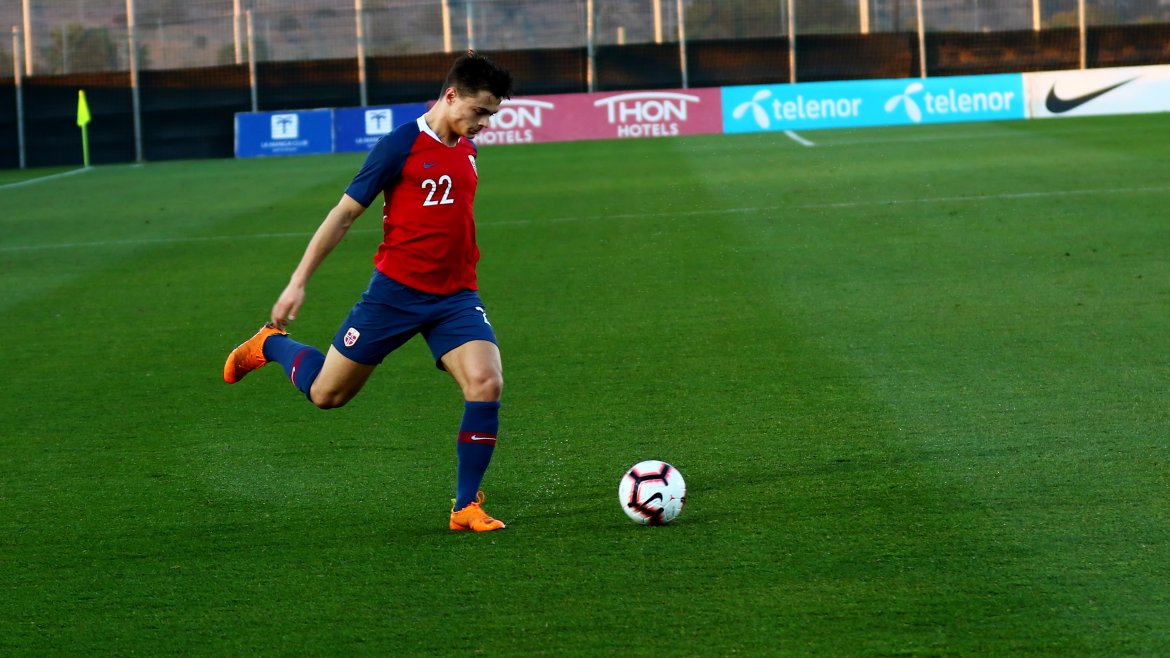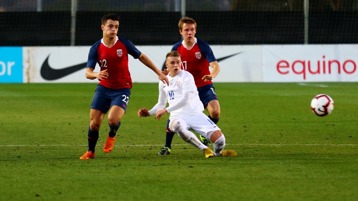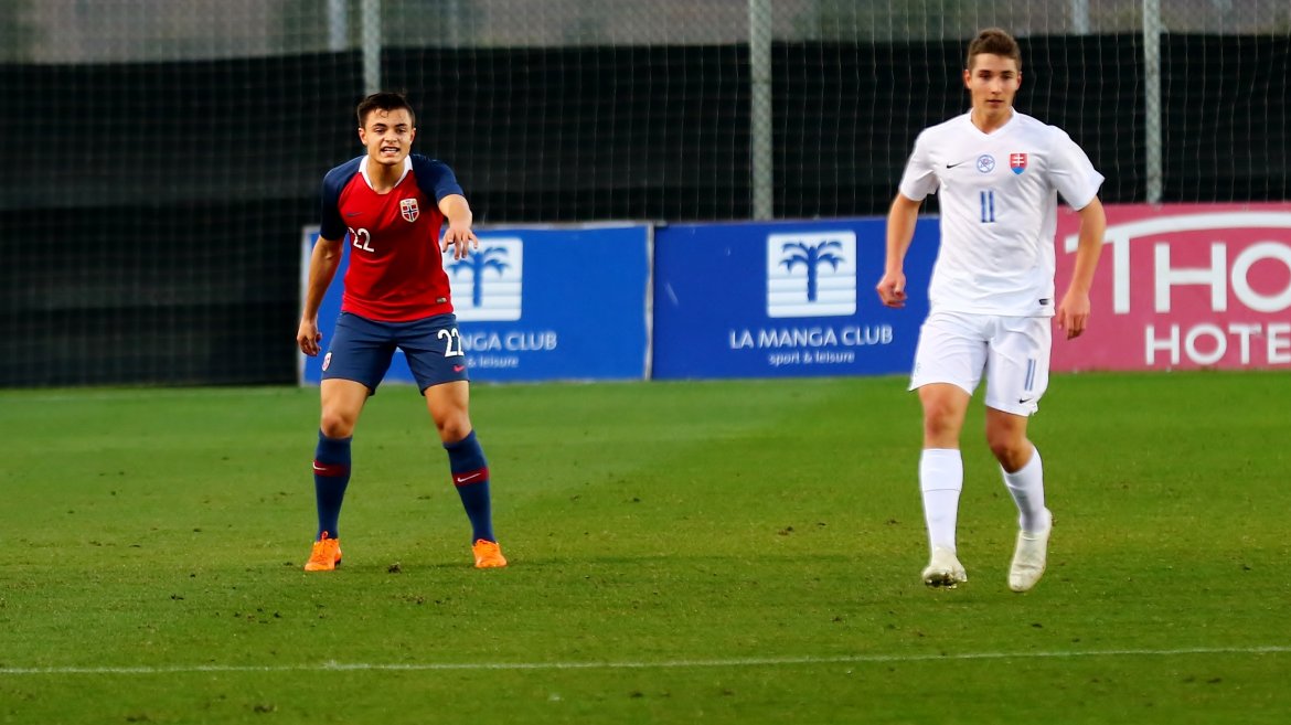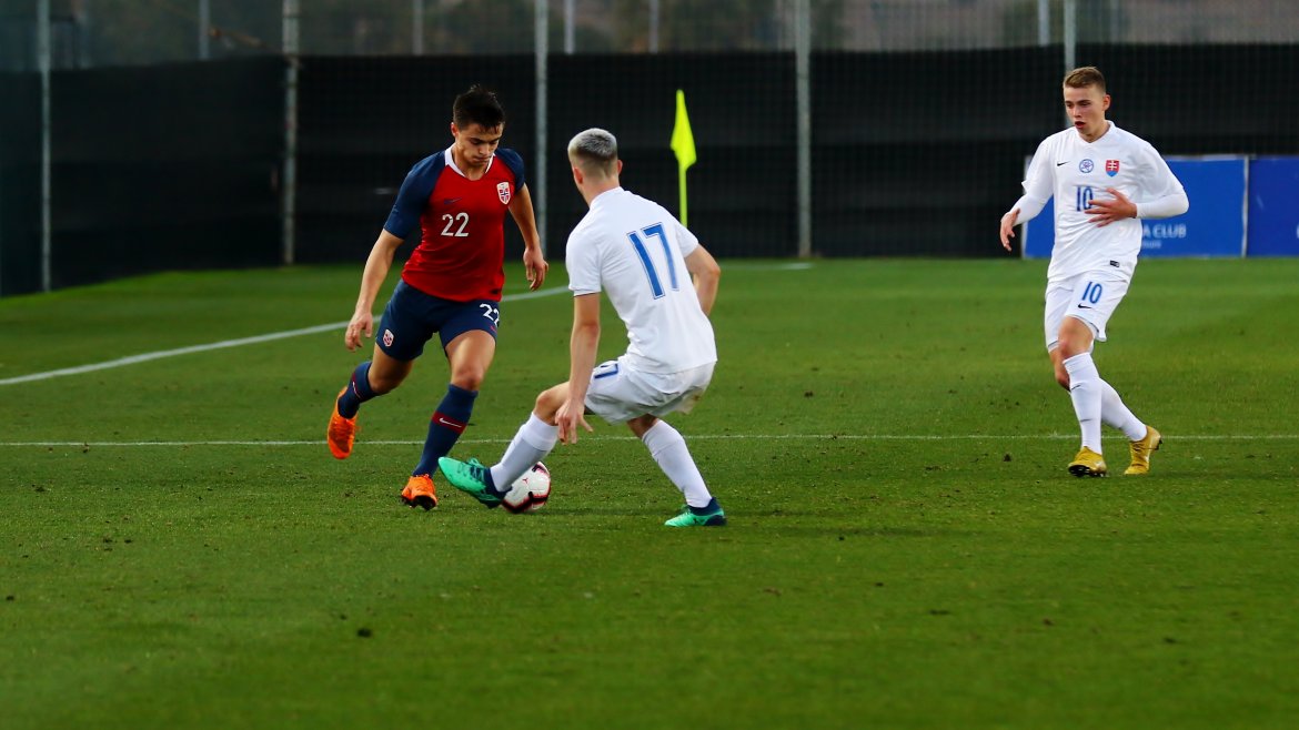 Eivind Helgesen med frå start då Norge G18 slo Slovakia 3-1 i kveld.