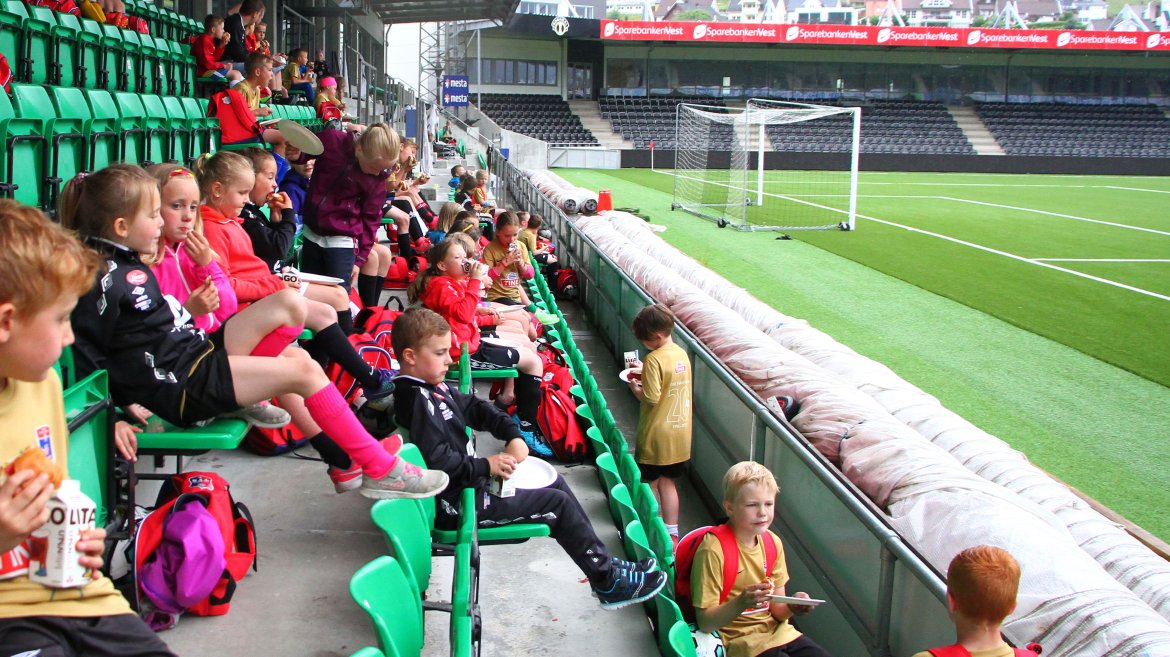 Trass regn som bøtta ned på slutten av siste Fotballskuledag denne veka, så kosa ungane seg med grillmat. A-laget var med. Ei heil veke med fotball, vener, samspel, liv og røre vart avslutta med diplomar til borna i Sognahallen. Takk for denne gong!