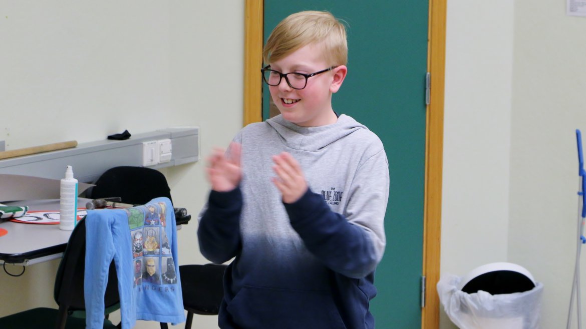 Omdømeleiar i klubben, Rasmus Mo, var eit stort smil under heile besøket.