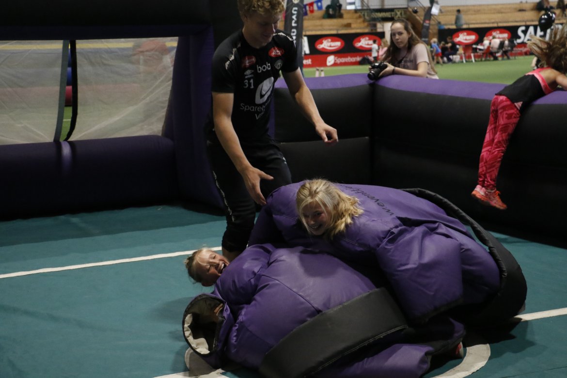 Før kampen mot Haugesund på søndag arrangerte Sogndal Fotball i samarbeid med Sparebanken Vest familiedag i Sognahallen. Nærare 350 person var innom arrangementet og det var mange smil å skimte på små og store.