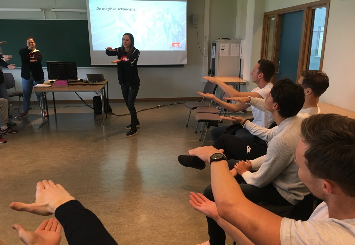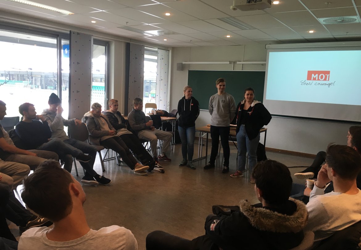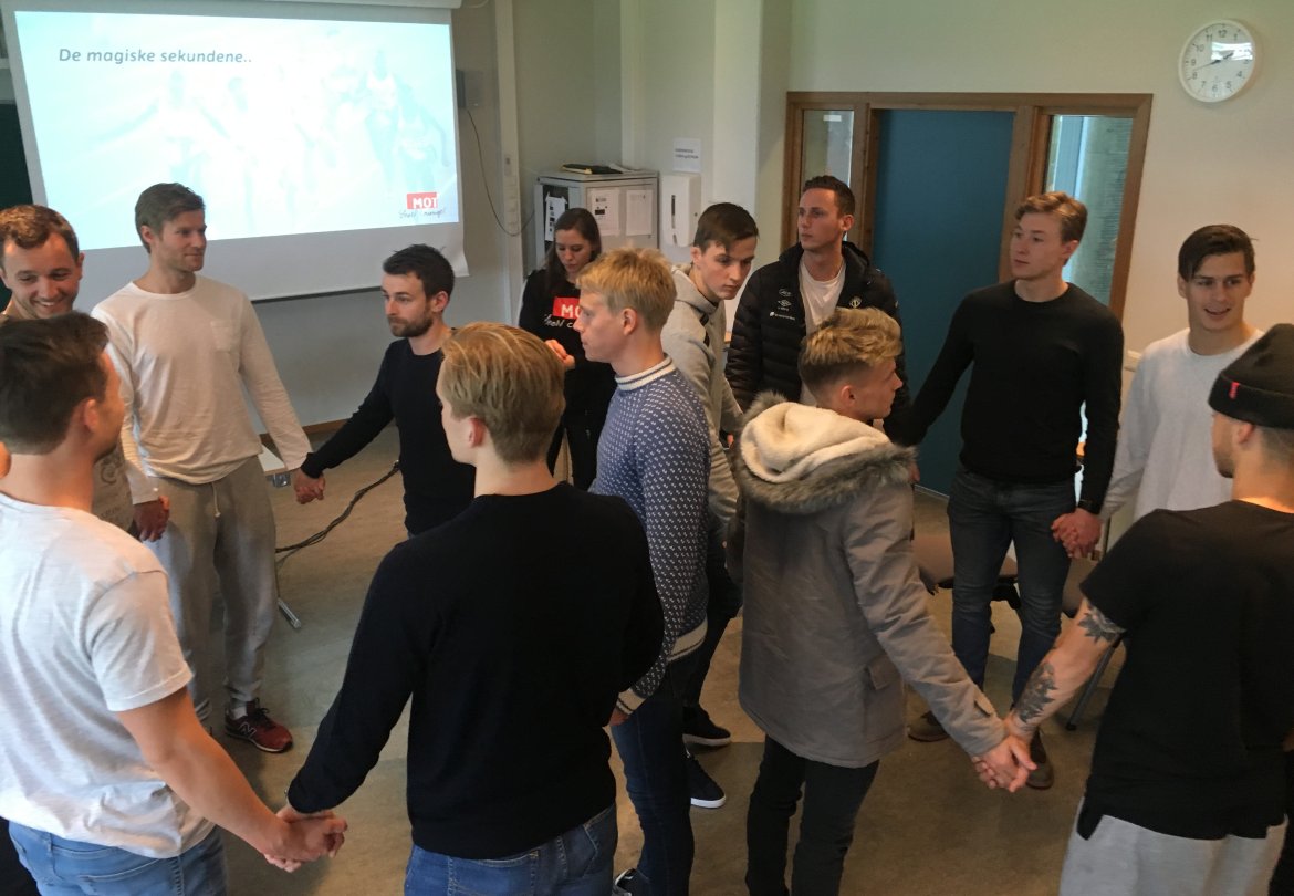 Denne gongen var det våre spelarar sin tur til å få besøk av MOT. Spelarane vart sett i ein hestesko, slik som skuleelevar og gjer på MOTbesøk, og deretter vart dei utfordra med ulike aktivitetar. Ein av aktivitetane var å reise seg opp frå stolen dersom ein var einig i påstaden som vart presentert. Her fekk gutane kjenne på mot til å stå opp for seg sjølv og ta eigne val.