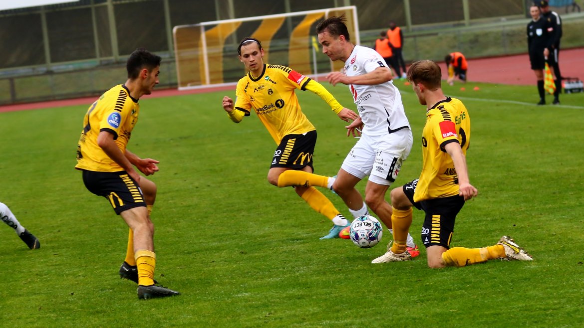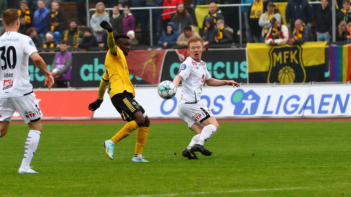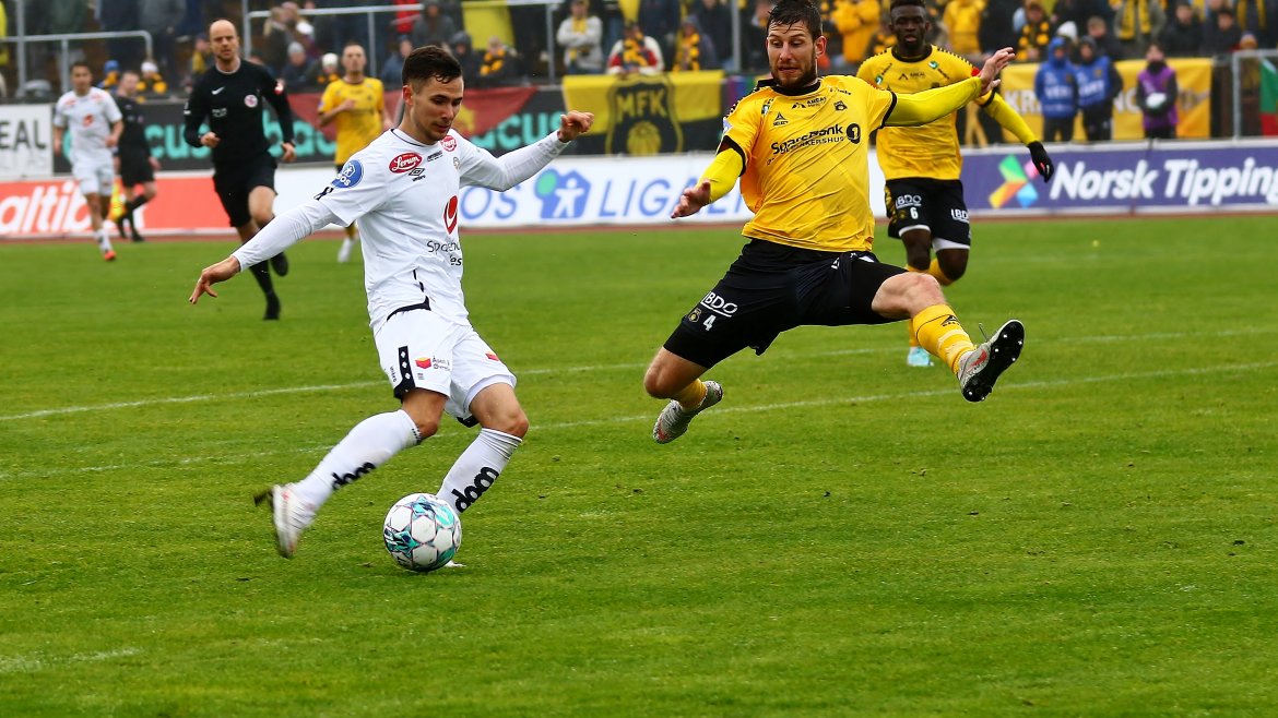 Den siste kampen i runden vart spelt i Mjøndalen i går kveld. Den vann Fredrikstad, og med det resultatet plasserte dei seg på naboplassen på tabellen, med lik poengsum som våre karar.