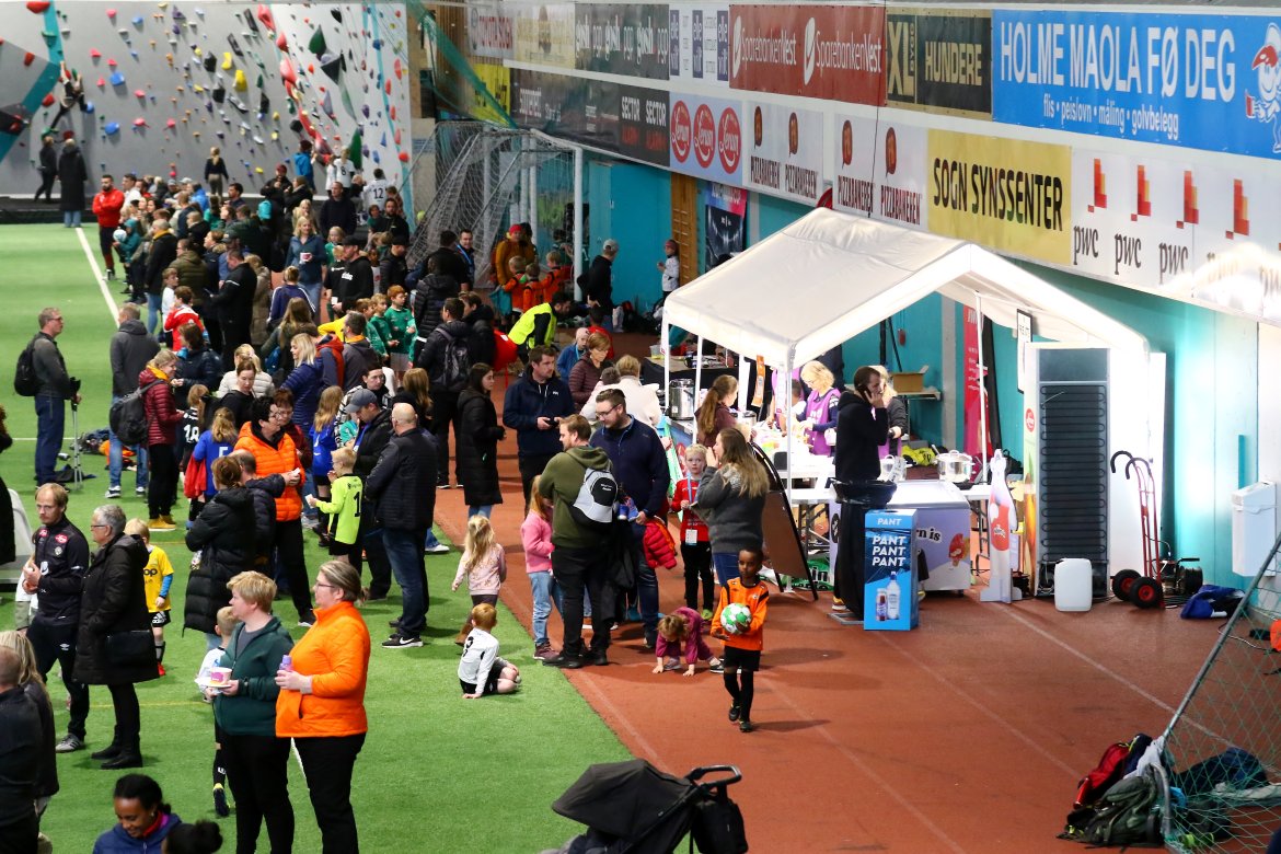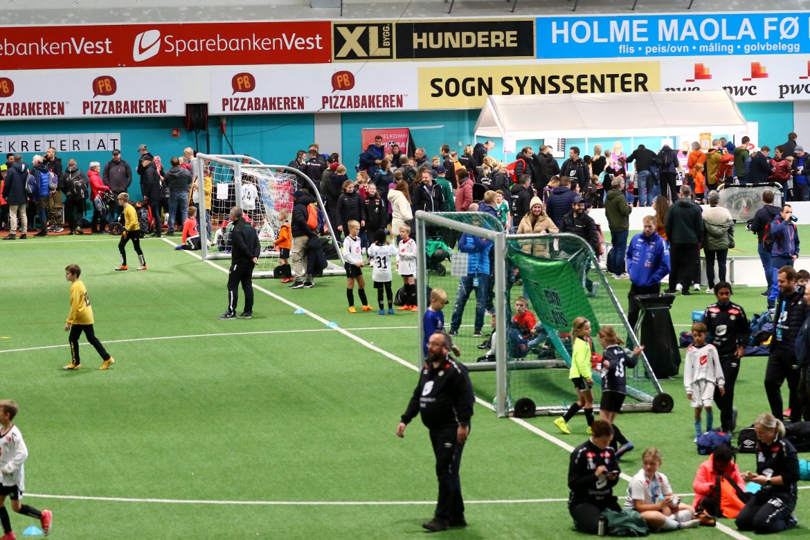 126 påmeldte lag og 1150 unge fotballspelarar i alderen 6-12 år spelte tilsaman 252 kampar i Sognahallen og på Fosshaugane Campus.