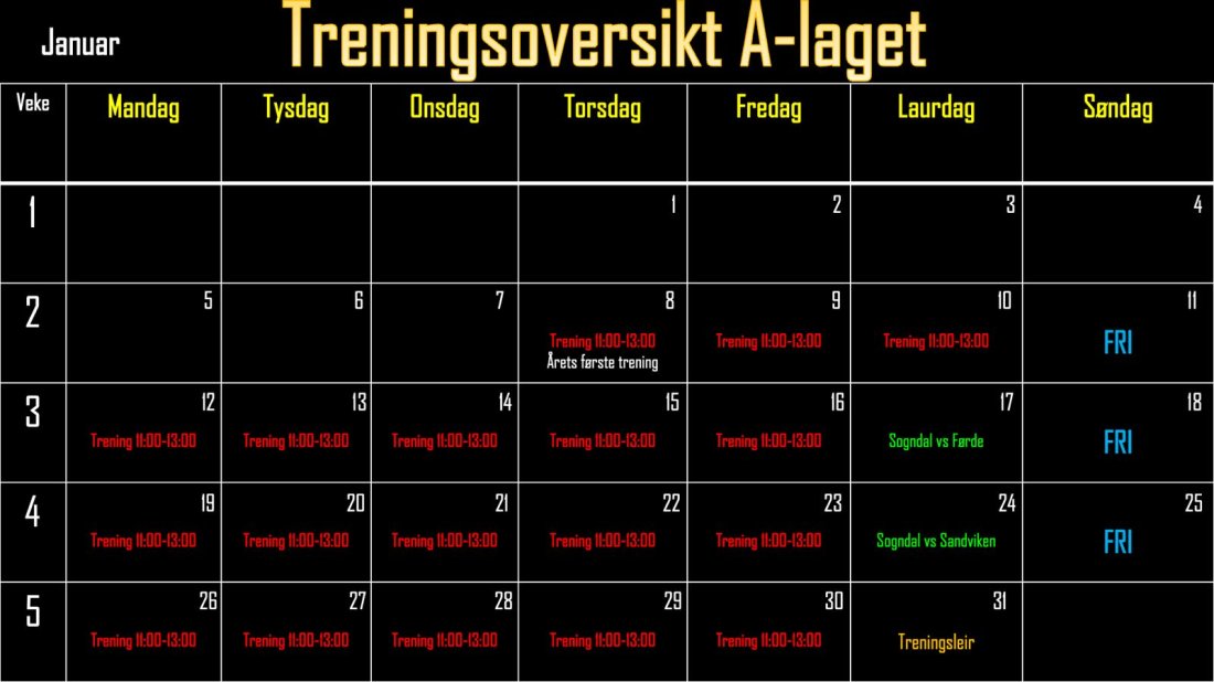 Treningsplan januar A-laget