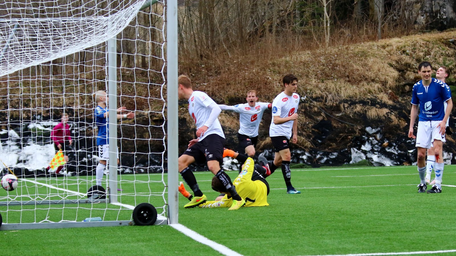 Det kunne lenge sjå ut som om dette var dagen då ingen ting ville inn i nota bak Øystese sin keeper. Han stengte kassa med god hjelp av eit oppofrande forsvar og metallet i råma bak seg. 4-5 gonger smalt det i stenger eller tverra.
