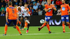 Chidiebere Nwakali skåra både eit flott mål og fekk raudt kort mot AaFK